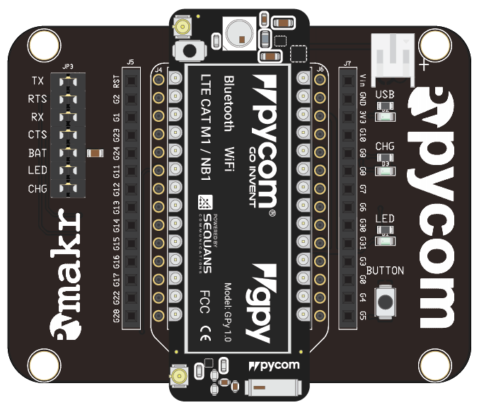 - Look for the reset button on the GPy module (located at a corner of the board, next to the LED).