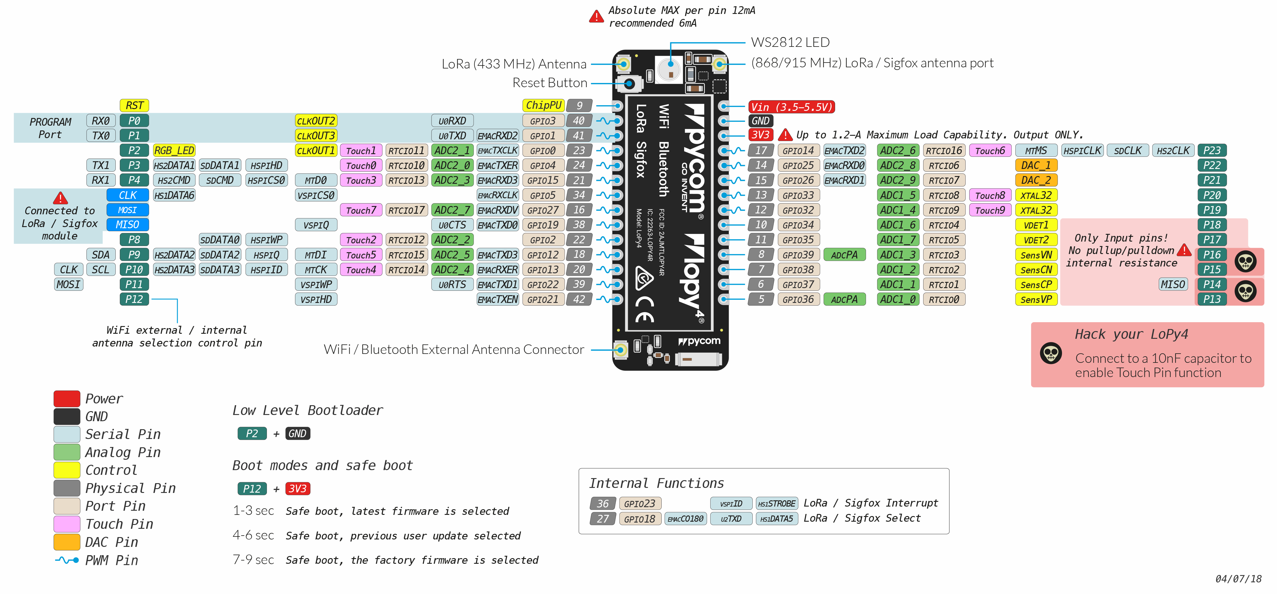 not be used to feed power into the LoPy4, otherwise the on-board regulator
